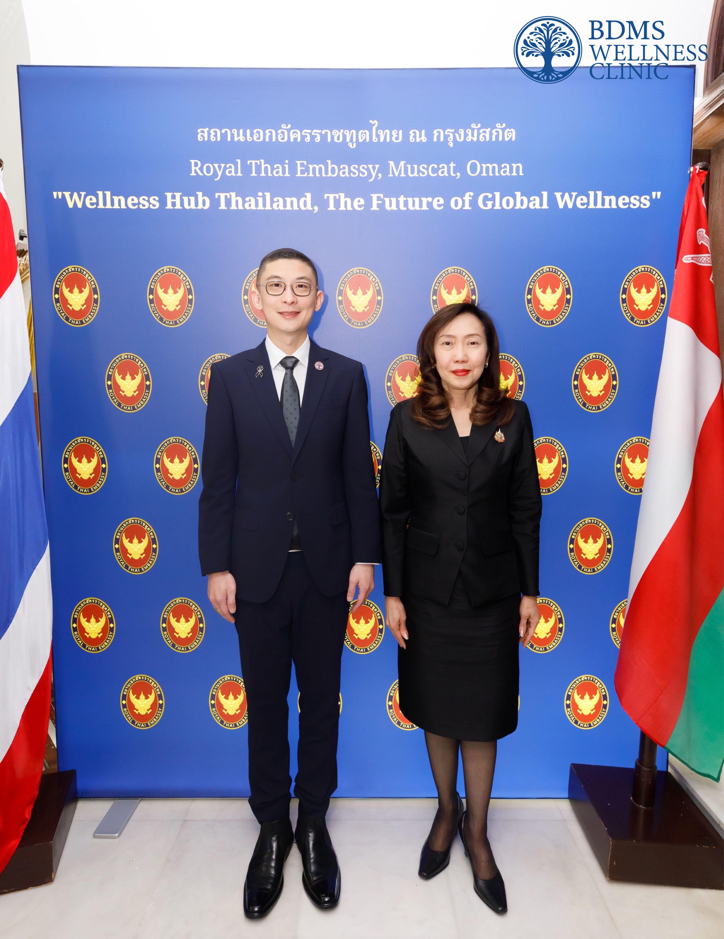 กรุงเทพฯ, ประเทศไทย – 10 ธันวาคม 2568 – บีดีเอ็มเอส เวลเนส คลินิก (BDMS Wellness Clinic) ศูนย์สุขภาพเชิงป้องกันในเครือบริษัท กรุงเทพดุสิตเวชการ จำกัด (มหาชน) นำโดย นายแพทย์ ตนุพล วิรุฬหการุญ ประธานคณะผู้บริหาร บีดีเอ็มเอส เวลเนส คลินิก และ บีดีเอ็มเอส เวลเนส รีสอร์ท บริษัท กรุงเทพดุสิตเวชการ จำกัด (มหาชน) ได้รับเกียรติจาก นางสาววารุณี ปั้นกระจ่าง เอกอัครราชทูต ณ กรุงมัสกัต รัฐสุลต่านโอมาน เพื่อหารือแนวทางสานต่อความร่วมมือด้านสุขภาพระหว่างไทยและโอมาน ภายใต้แนวคิด “Health Vision 2050” ณ สถานเอกอัครราชทูต ณ กรุงมัสกัต รัฐสุลต่านโอมาน ซึ่งเป็นวิสัยทัศน์ระยะยาวด้านระบบสุขภาพของโอมานในมิติที่สำคัญ ทั้งด้านการเงินสุขภาพ การพัฒนาทรัพยากรบุคคล การให้บริการทางการแพทย์ เทคโนโลยี และผลิตภัณฑ์ทางการแพทย์ ซึ่งสอดคล้องกับพันธกิจและวิสัยทัศน์ Wellness Hub Thailand ของนายแพทย์ตนุพล ในการผลักดัน Wellness Tourism ของไทยสู่ระดับสากล พร้อมผลักดันประเทศไทยให้เป็น Wellness Hub ระดับโลก