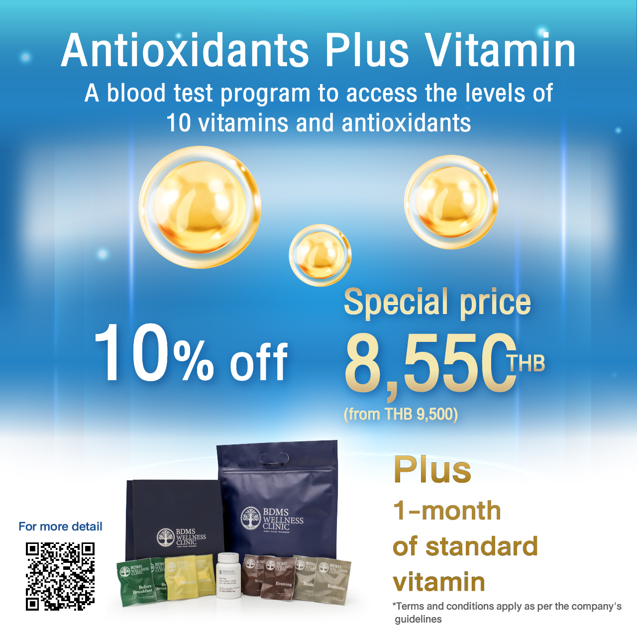 - Antioxidants Plus Vitamin Special 10% Discount: 8,550 THB (from 9,500 THB)