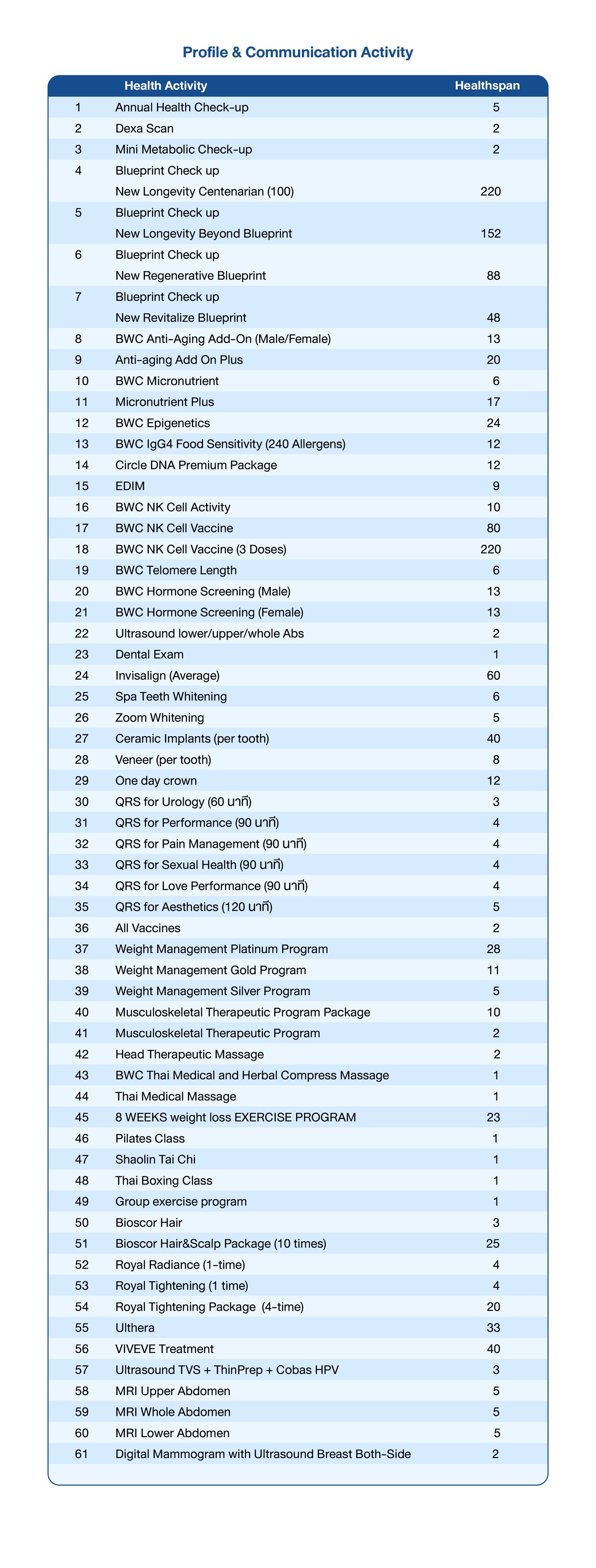 และกิจกรรมต่างๆท่านสามารถนำ Healthspan มาแลกสิทธิประโยชน์