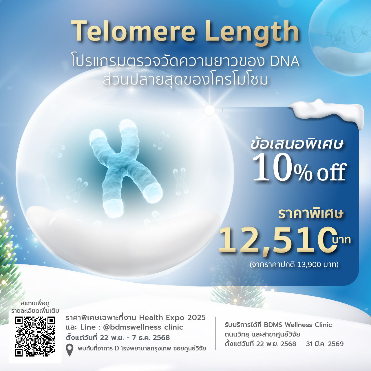 - Telomere Length ลด 10% ราคาโปรโมชั่น 12,510 บาท (จากราคาปกติ 13,900 บาท)