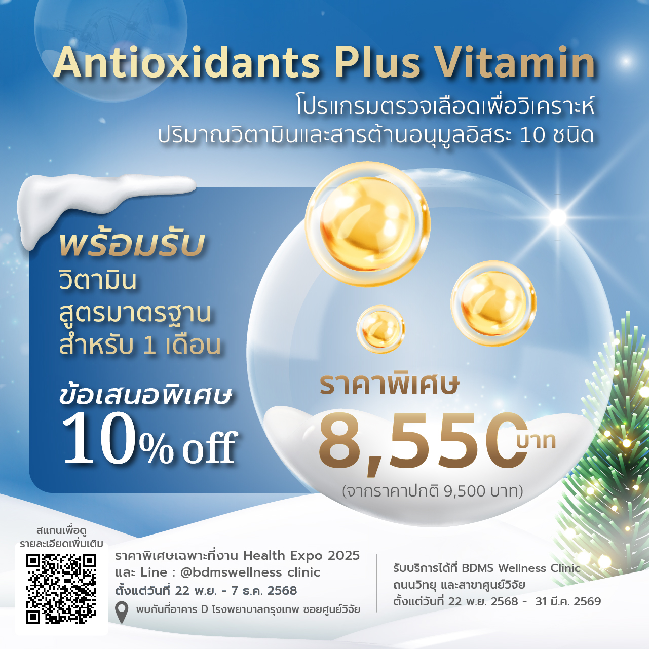 - Antioxidants Plus Vitamin ลด 10% ราคาโปรโมชั่น 8,550 บาท (จากราคาปกติ 9,500 บาท)