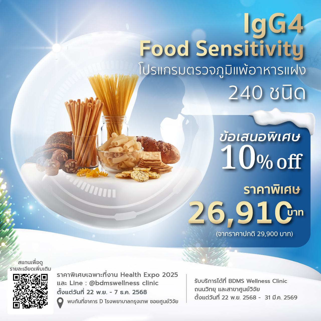 - IgG4 Food Intolerance (272) ลด 10% ราคาโปรโมชั่น 26,910 บาท (จากราคาปกติ 29,900 บาท)