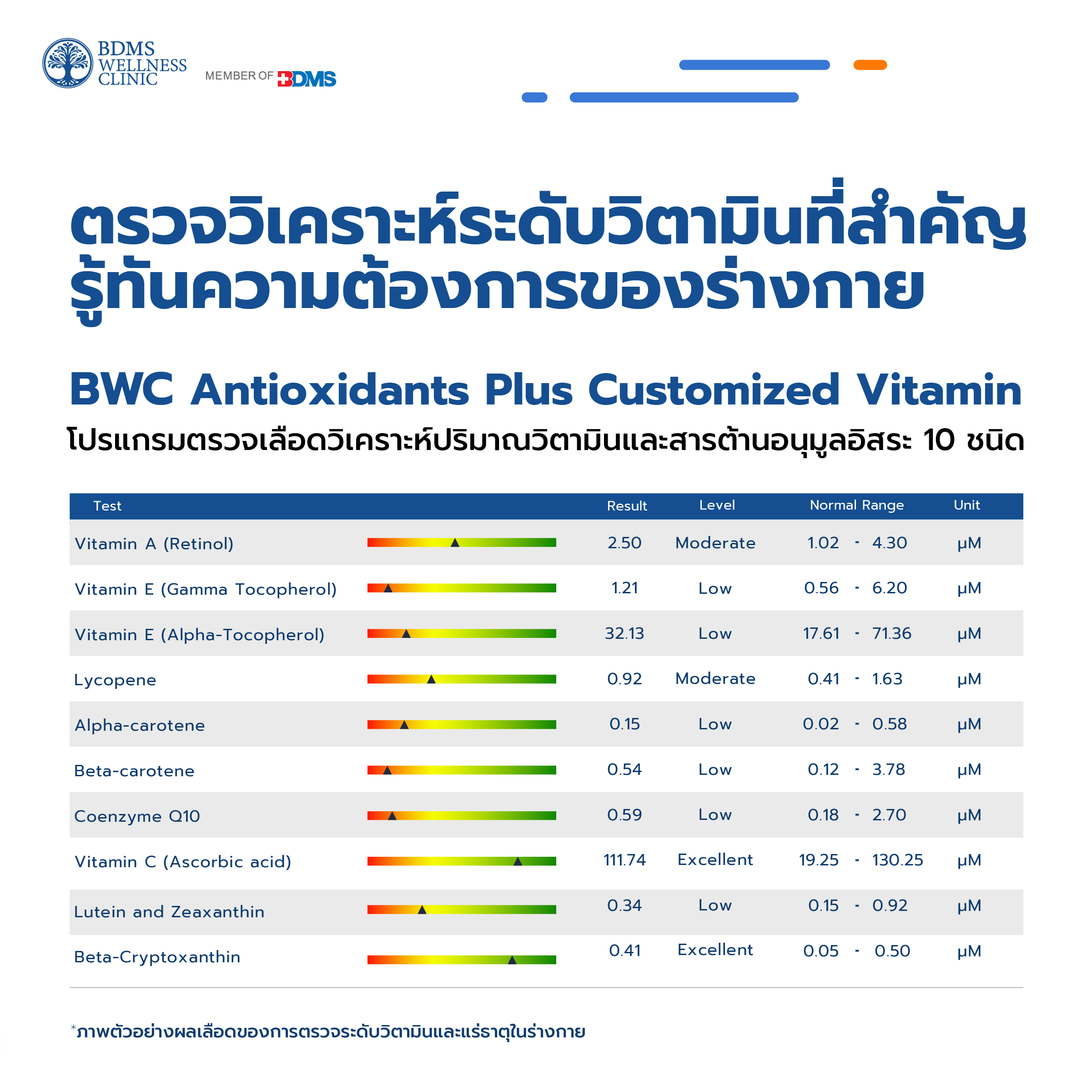 โปรแกรมตรวจเลือด เพื่อวิเคราะห์ปริมาณวิตามินและสารต้านอนุมูลอิสระ 10 ชนิด