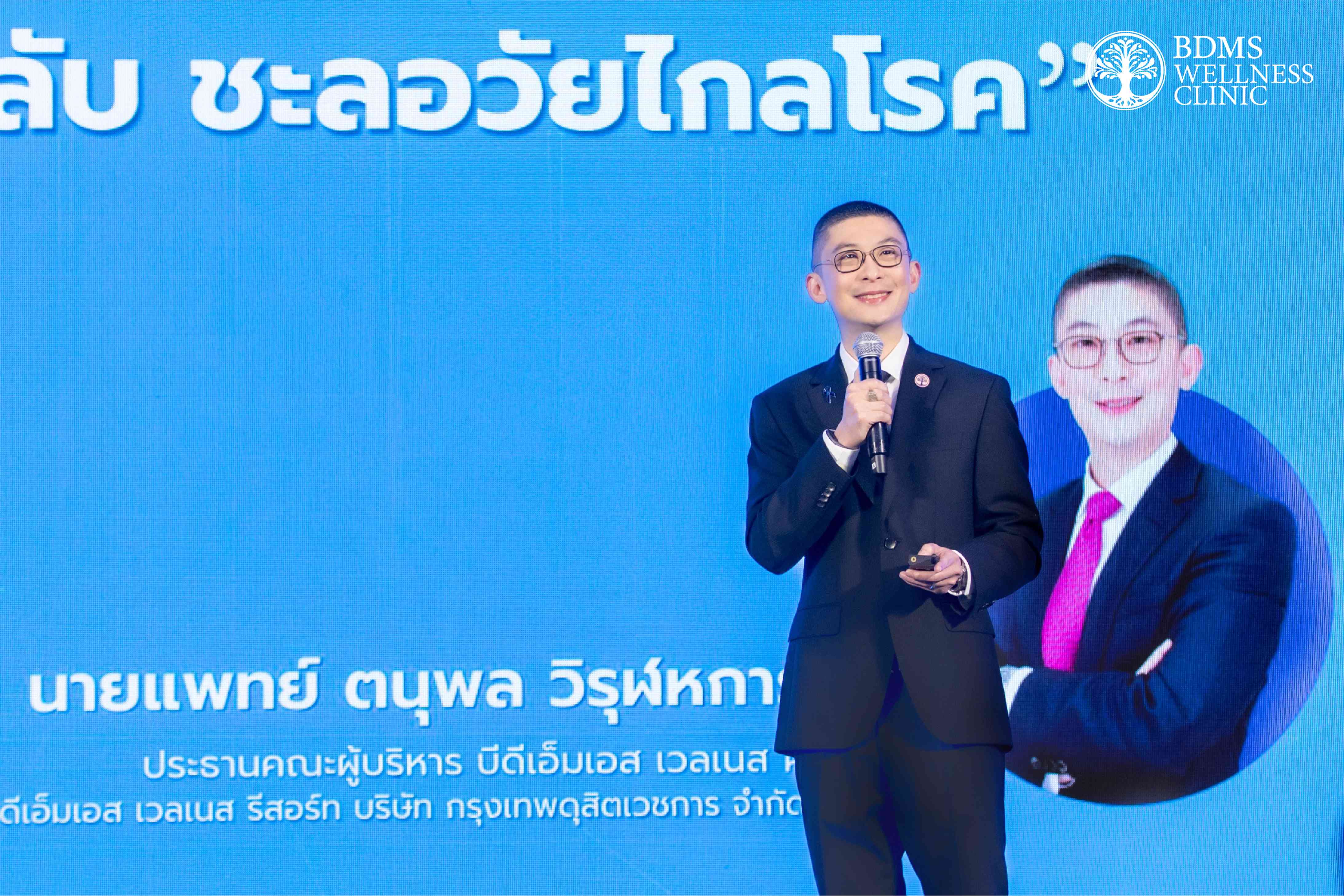 นายแพทย์ตนุพล วิรุฬหการุญ ประธานคณะผู้บริหาร บีดีเอ็มเอส เวลเนส คลินิก และ บีดีเอ็มเอส เวลเนส รีสอร์ท บริษัท กรุงเทพดุสิตเวชการ จำกัด (มหาชน) กล่าวถึงความร่วมมือในครั้งนี้ว่า “เมื่อโลกก้าวสู่สังคมผู้สูงอายุอย่างเต็มรูปแบบ การมีสุขภาพดีและอายุยืนจึงไม่ใช่เพียงเรื่องของ Lifespan แต่คือการยืดช่วงเวลาของสุขภาพที่แข็งแรง หรือ Health Span ให้ยาวนานที่สุด เรามุ่งมั่นที่จะรณรงค์ให้คนไทยหันมาดูแลสุขภาพเชิงป้องกันภายใต้หลักเวชศาสตร์วิถีชีวิต หรือ Lifestyle Medicine ศาสตร์ทางการแพทย์ที่มุ่งเน้นการสร้างรากฐานของสุขภาพที่ยั่งยืน โดยเป็นการดูแลสุขภาพตั้งแต่ต้นทางผ่านการปรับเปลี่ยนวิถีชีวิต เพื่อป้องกันการเกิดปัญหาสุขภาพ ผ่าน 5 เคล็ดลับง่าย ๆ คือ ควบคุมน้ำหนักไม่ให้อ้วน รับประทานอาหารที่ดี ออกกำลังกายสม่ำเสมอ นอนหลับให้เพียงพอ หลีกเลี่ยงบุหรี่ แอลกอฮอล์ และฝุ่น PM2.5 รวมถึงจัดการความเครียด เพราะเพียงแค่ปรับพฤติกรรมเล็ก ๆ ในแต่ละวัน ก็สามารถสร้างความเปลี่ยนแปลงยิ่งใหญ่ให้สุขภาพแข็งแรง ชะลอวัย และห่างไกลโรคได้อย่างยั่งยืน”