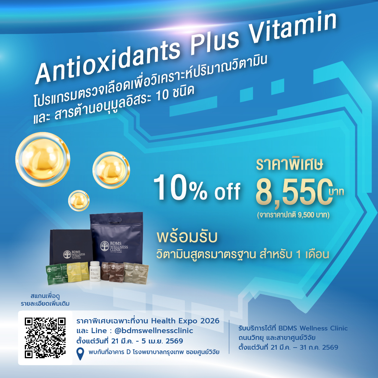 - Antioxidants Plus Vitamin Special 10% Discount: 8,550 THB (from 9,500 THB)