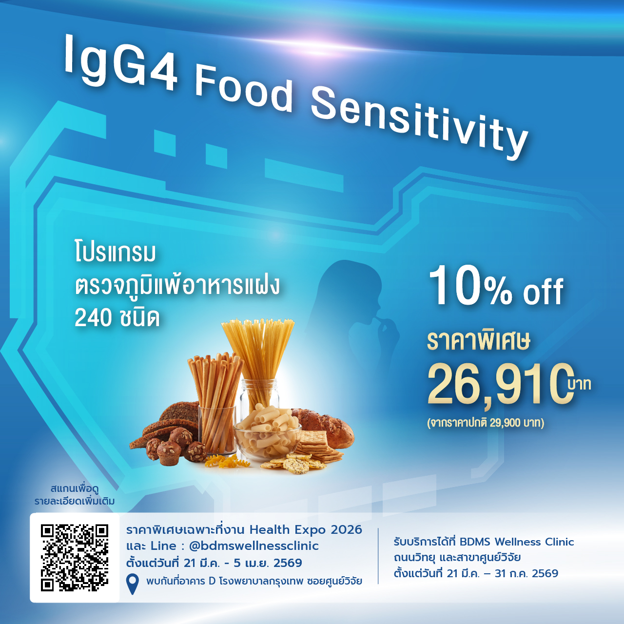 - IgG4 Food Sensitivity (240) Program Special 10% Discount: 26,910 THB (from 29,900 THB)